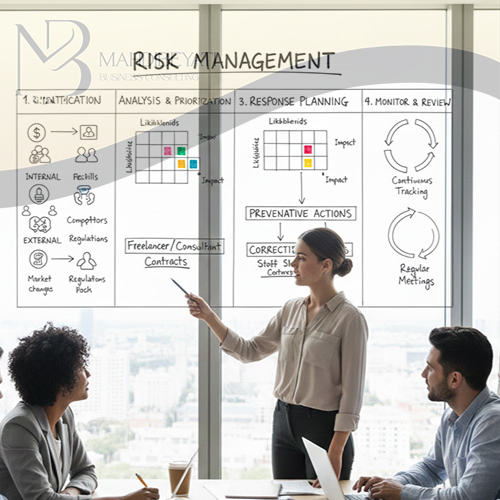 به عنوان مثال، اگر ریسک کمبود نیروی انسانی شناسایی شود، قرارداد با فریلنسرها یا مشاوران پارهوقت به عنوان نیروی پشتیبان در نظر گرفته میشود.